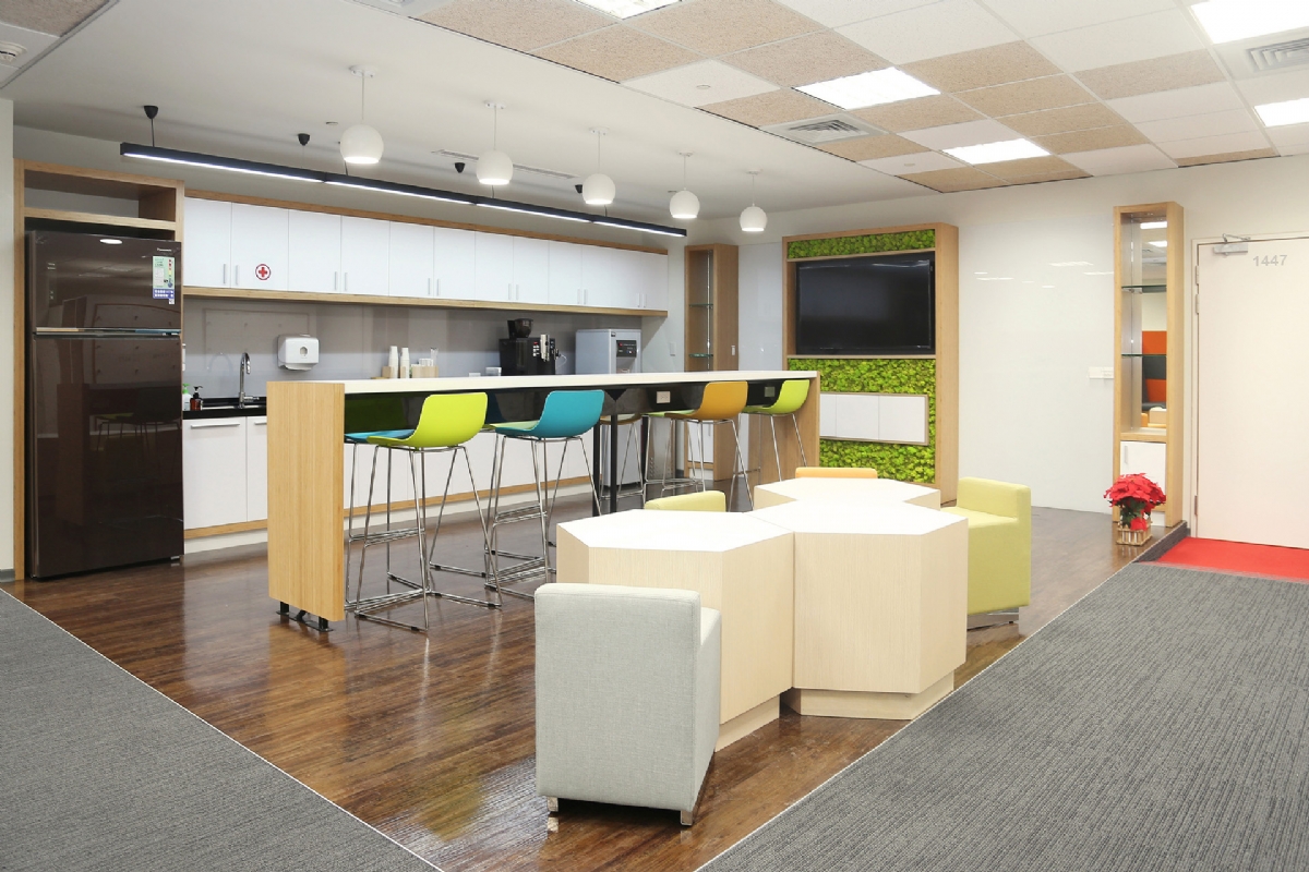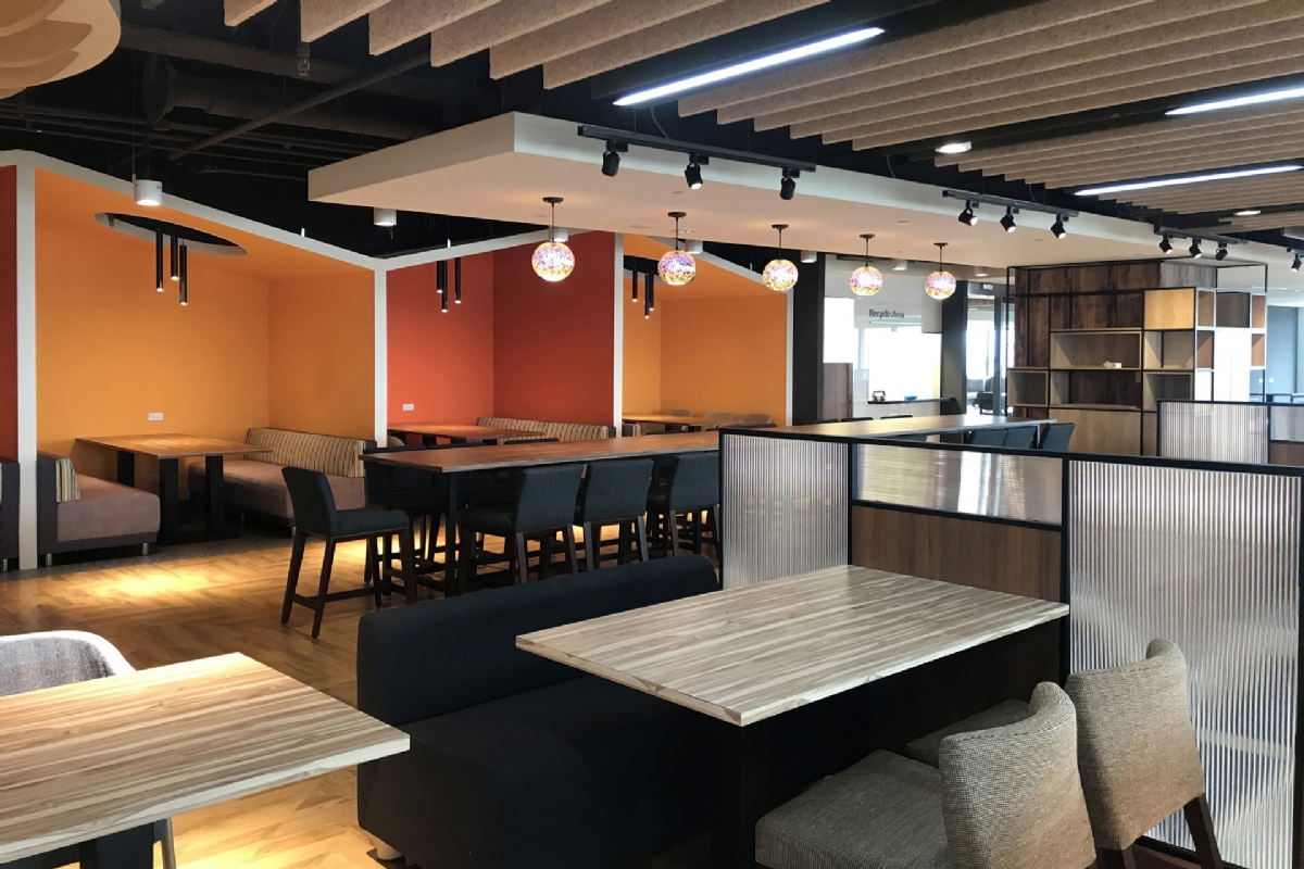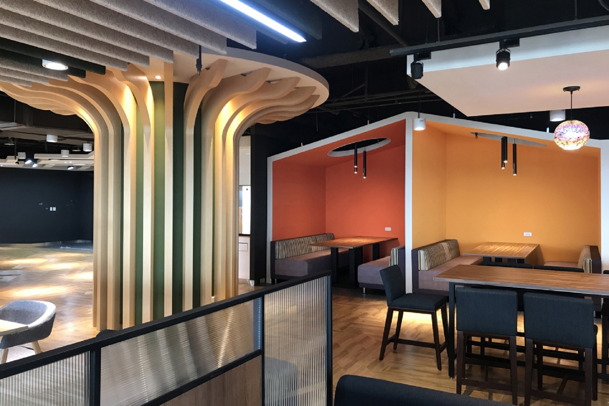 本案以北歐風格為主軸,在辦公區透過開放式格局、俐落的線條與明亮清新的色彩搭配,營造出高效且專注的工作氛圍,並藉由自然光線與簡潔材質,突顯空間的通透與現代感。 討論區結合木質階梯、活潑色彩軟墊與吸音造型天花,提供靈活運用的多功能共享場域,適合培訓、簡報或非正式交流,並以趣味元素增添親和力,讓學習與互動過程更具參與感。 休憩餐飲區則融入輕工業風與休閒氛圍,透過鮮明的色彩牆面、多元化的座位形式及溫潤的木質元素,打造兼具舒適感與交流性的社交角落,鼓勵員工在輕鬆氛圍中交流與合作。